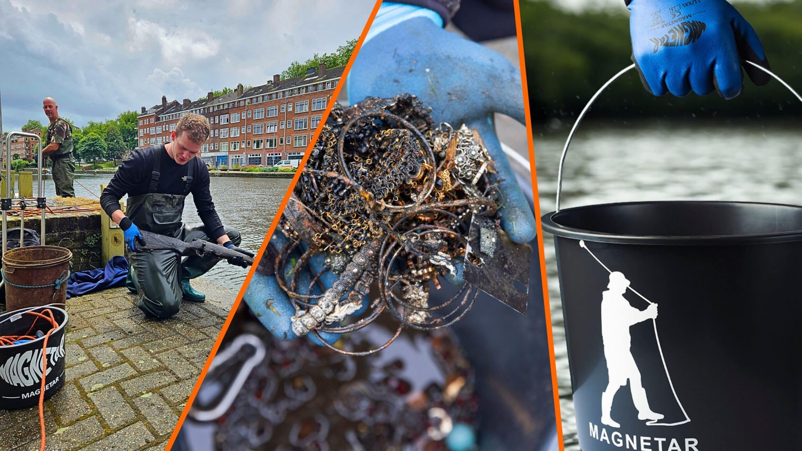 Beim Bergen haften oft Nägel, Drahtreste und andere Metallteile am Magneten. Auch Gegenstände, die lange im Wasser lagen, bringen zusätzlichen Unrat mit.